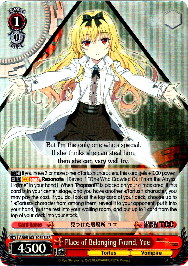 【AUTO】 【CXCOMBO】 Resonate [Reveal 1 "One Who Crawled Out From the Abyss, Hajime" in your hand] When "Proposal?" is placed on your climax area, if this card is in your center stage, and you have another 《Tortus》 character, you may pay the cost. If you do, look at the top card of your deck, choose up to 1 《Tortus》 character from among them, reveal it to your opponent, put it into your hand, put the rest into your waiting room, and put up to 1 card from the top of your deck into your stock.