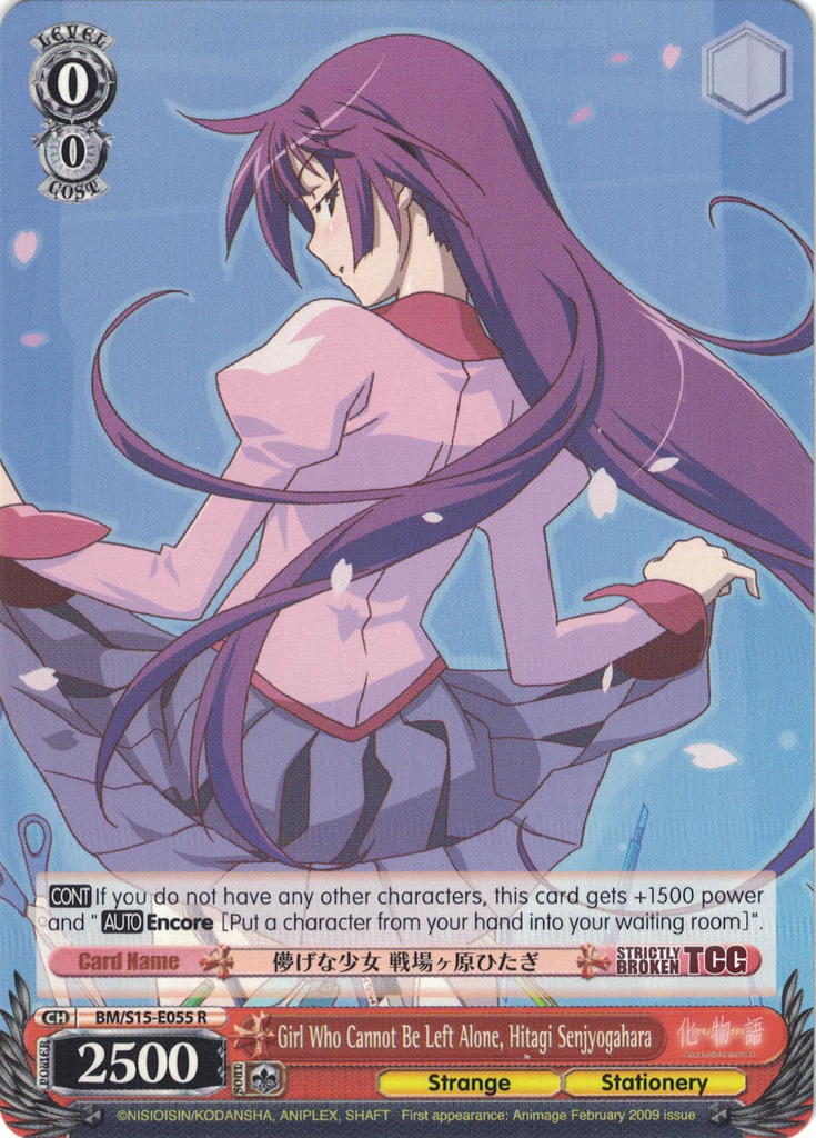 BM/S15-E055 Girl Who Cannot Be Left Alone, Hitagi Senjyogahara - BAKEMONOGATARI English Weiss Schwarz Trading Card Game