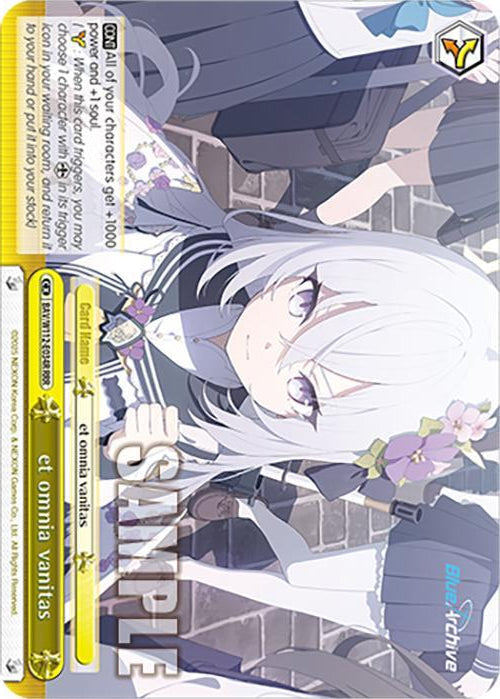 【CONT】 All of your characters get +1000 power and +1 soul. (: When this card triggers, you may choose 1 character with in its trigger icon in your waiting room, and return it to your hand or put it into your stock)