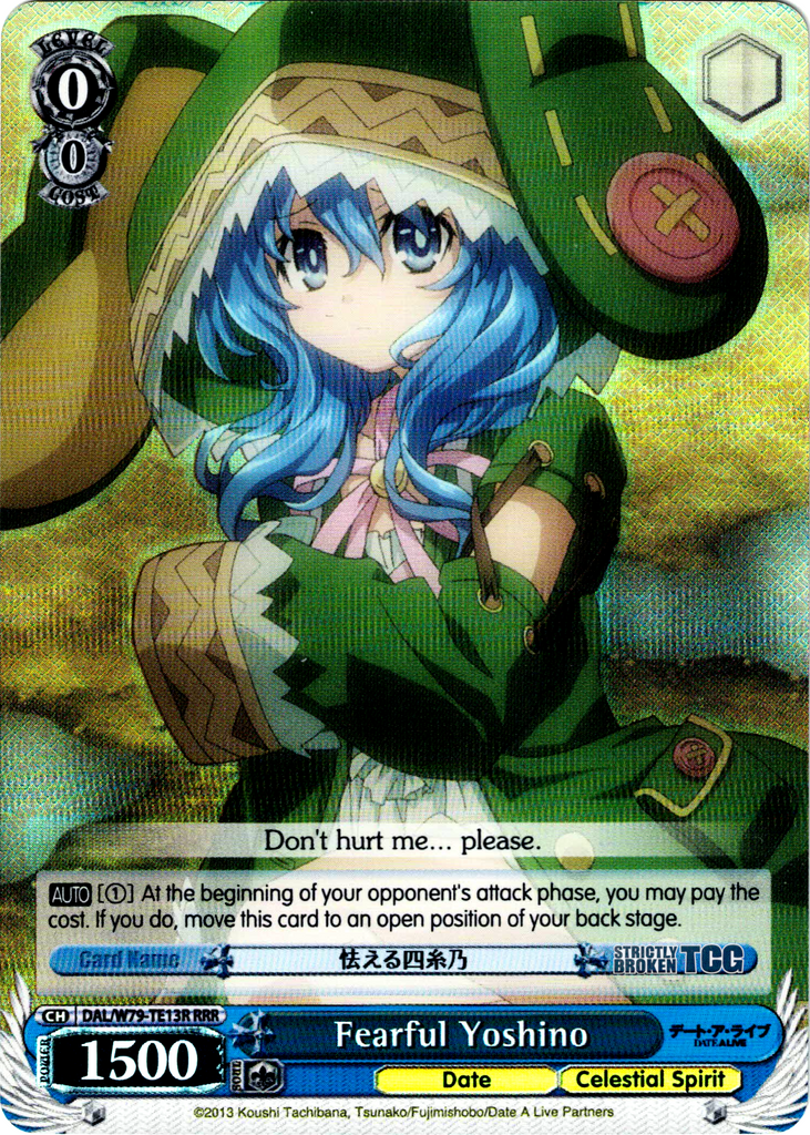 The Date A Live Foils English Weiss Schwarz Trading Card Game card images used on this site have been obtained and re-posted from Bushiroad websites in accordance to the guidelines stated there. Re-use of these images (re-post, distribution) is strictly prohibited.