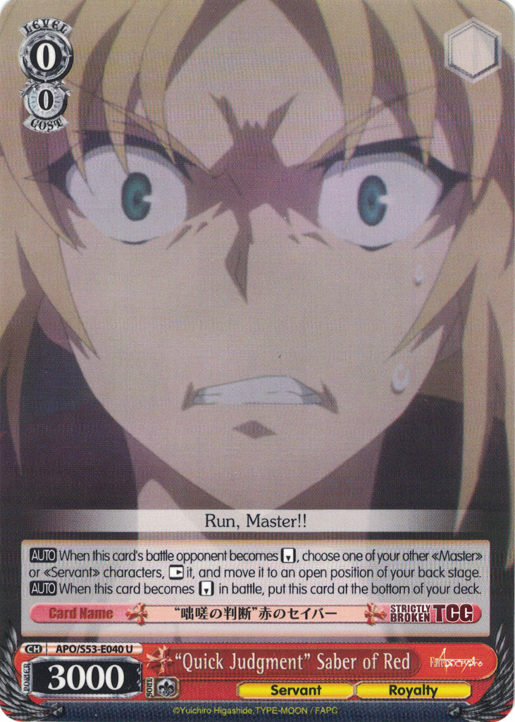 The Fate/Apocrypha English Weiss Schwarz Trading Card Game card images used on this site have been obtained and re-posted from Bushiroad websites in accordance to the guidelines stated there. Re-use of these images (re-post, distribution) is strictly prohibited.