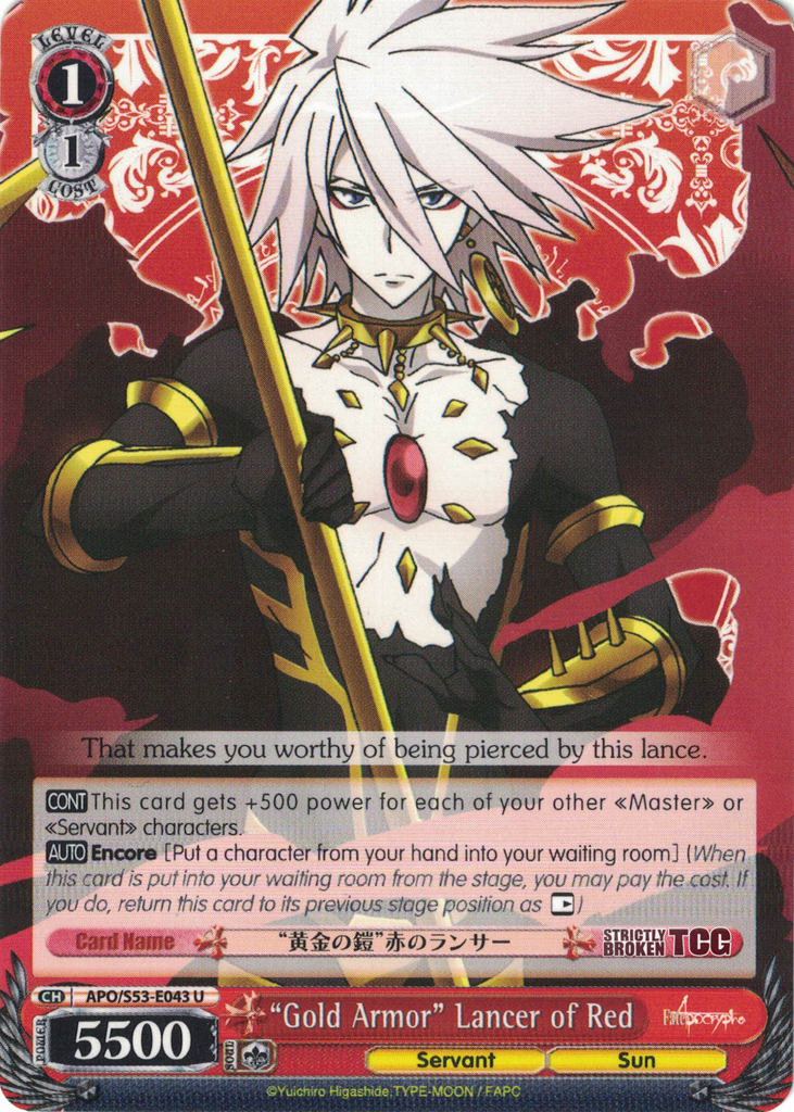 APO/S53-E043 "Gold Armor" Lancer of Red - Fate/Apocrypha English Weiss Schwarz Trading Card Game
