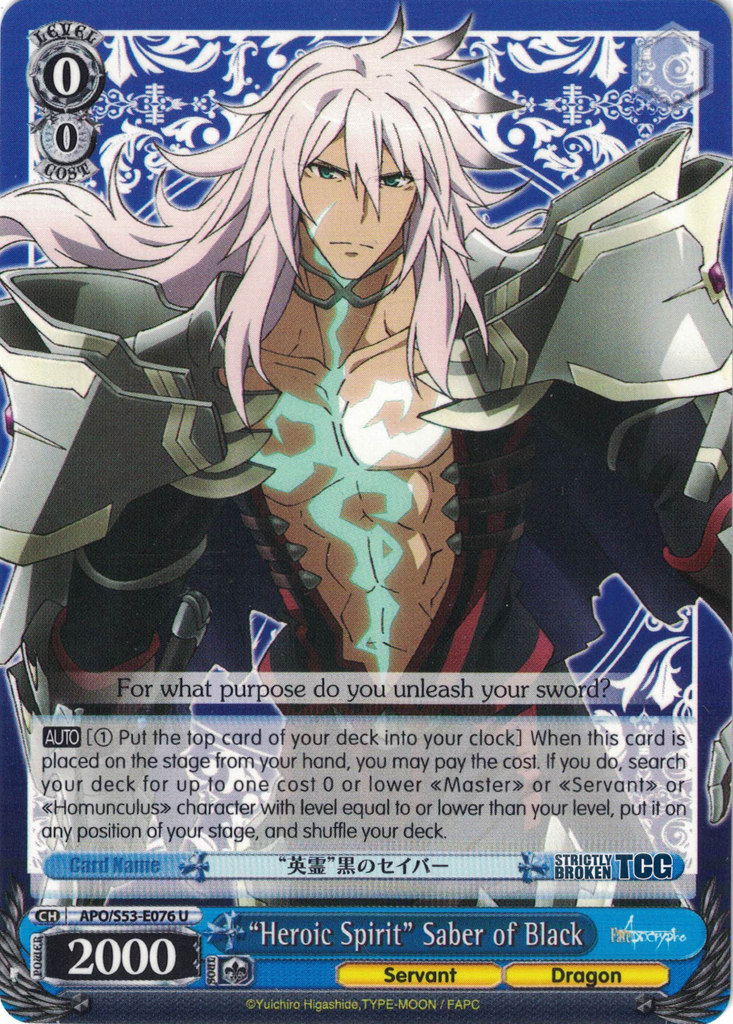The Fate/Apocrypha English Weiss Schwarz Trading Card Game card images used on this site have been obtained and re-posted from Bushiroad websites in accordance to the guidelines stated there. Re-use of these images (re-post, distribution) is strictly prohibited.