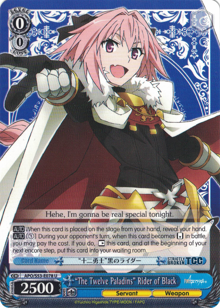 The Fate/Apocrypha English Weiss Schwarz Trading Card Game card images used on this site have been obtained and re-posted from Bushiroad websites in accordance to the guidelines stated there. Re-use of these images (re-post, distribution) is strictly prohibited.
