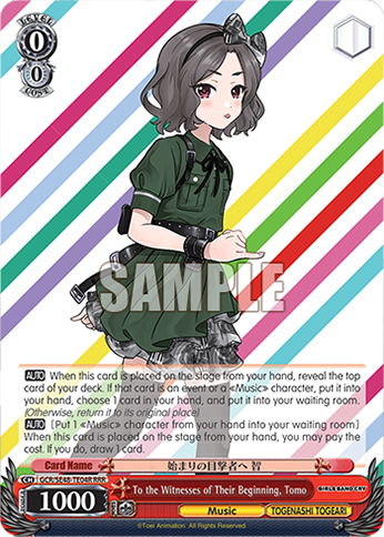 【AUTO】 When this card is placed on the stage from your hand, reveal the top card of your deck. If that card is an event or a 《Music》 character, put it into your hand, choose 1 card in your hand, and put it into your waiting room. (Otherwise, return it to its original place)【AUTO】 [Put 1 《Music》 character from your hand into your waiting room] When this card is placed on the stage from your hand, you may pay the cost. If you do, draw 1 card.