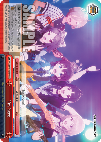 【CONT】 All of your characters get +1000 power and +1 soul.(: When this card triggers, you may choose 1 character in your waiting room, and return it to your hand)