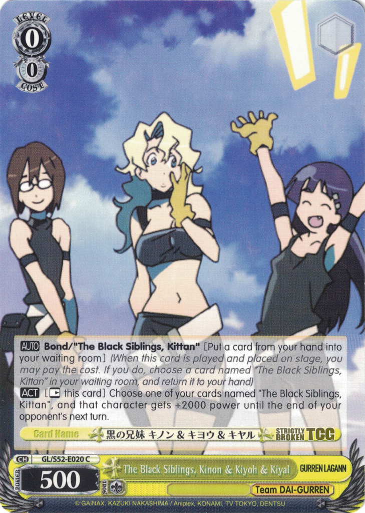 GL/S52-E020 The Black Siblings, Kinon & Kiyoh & Kiyal - Gurren Lagann English Weiss Schwarz Trading Card Game