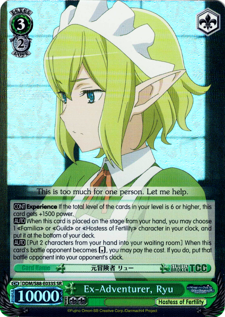 【AUTO】 When this card is placed on the stage from your hand, you may choose 1 《Familia》 or 《Guild》 or 《Hostess of Fertility》 character in your clock, and put it at the bottom of your deck.
