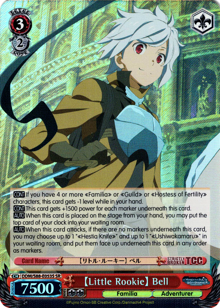 【AUTO】 When this card attacks, if there are no markers underneath this card, you may choose up to 1 "《Hestia Knife》" and up to 1 "《Ushiwakamaru》" in your waiting room, and put them face up underneath this card in any order as markers.