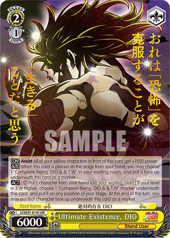 【AUTO】 When this card is placed on the stage from your hand, you may choose 1 "Complete Being, DIO & T.W" in your waiting room, and put it face up underneath this card as a marker.