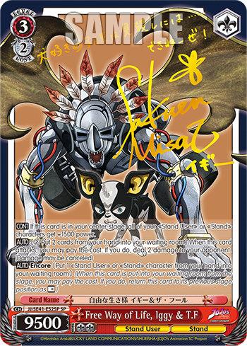 【AUTO】 Encore [Put 1 《Stand User》 or 《Stand》 character from your hand into your waiting room] (When this card is put into your waiting room from the stage, you may pay the cost. If you do, return this card to its previous stage position as 【REST】)