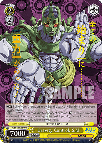 【CONT】 If all of your characters are 《Stand User》 or 《Stand》, this card gets +3000 power.