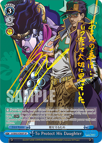 【COUNTER】 If you have 5 or more 《Stand User》 or 《Stand》 characters, choose 1 character in battle, and that character gets the following ability until end of turn. "【CONT】 This card cannot deal damage to a player."