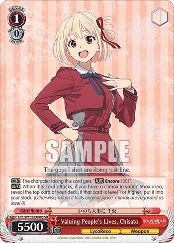 【AUTO】 When this card attacks, if you have a climax in your climax area, reveal the top card of your deck. If that card is level 1 or higher, put it into your stock. (Otherwise, return it to its original place. Climax are regarded as level 0)