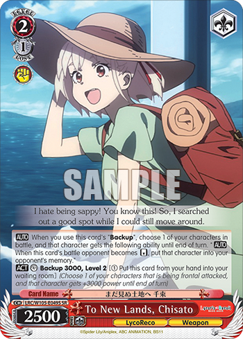 【AUTO】 When you use this card's "Backup", choose 1 of your characters in battle, and that character gets the following ability until end of turn. "【AUTO】 When this card's battle opponent becomes 【REVERSE】, put that character into your opponent's memory."