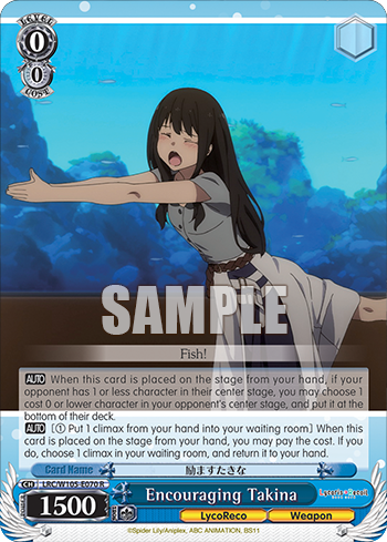【AUTO】 When this card is placed on the stage from your hand, if your opponent has 1 or less character in their center stage, you may choose 1 cost 0 or lower character in your opponent's center stage, and put it at the bottom of their deck.
