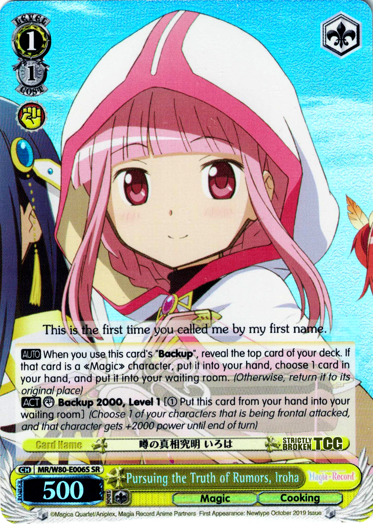 The TV Anime "Magia Record: Puella Magi Madoka Magica Side Story" English Weiss Schwarz Trading Card Game card images used on this site have been obtained and re-posted from Bushiroad websites in accordance to the guidelines stated there. Re-use of these images (re-post, distribution) is strictly prohibited.