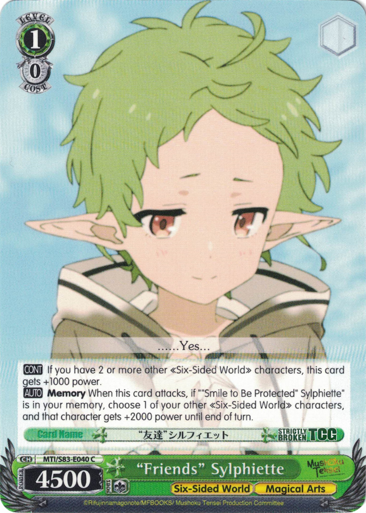 【AUTO】 Memory When this card attacks, if ""Smile to Be Protected" Sylphiette" is in your memory, choose 1 of your other 《Six-Sided World》 characters, and that character gets +2000 power until end of turn.