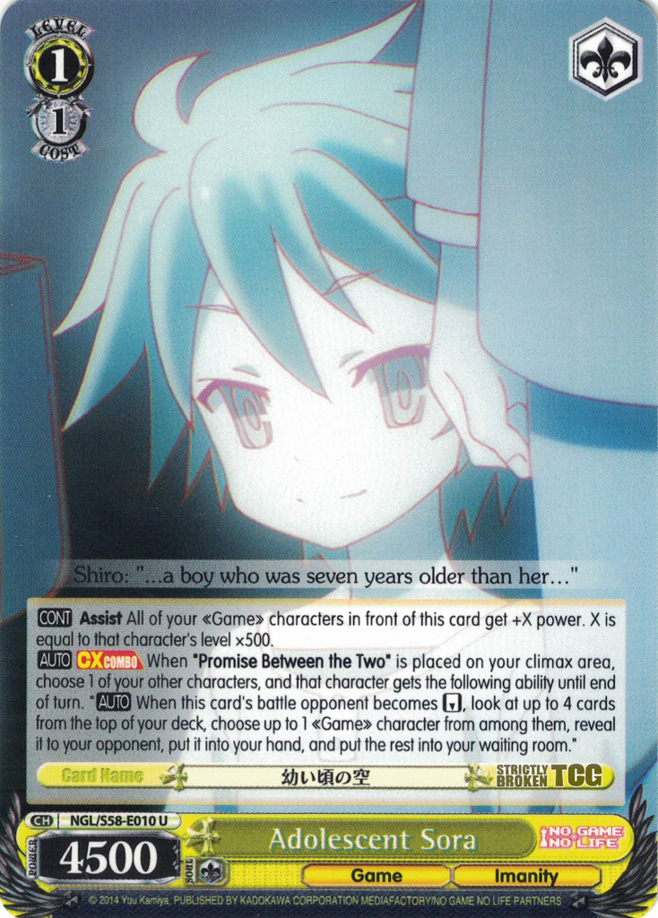 NGL/S58-E010 Adolescent Sora - No Game No Life English Weiss Schwarz Trading Card Game