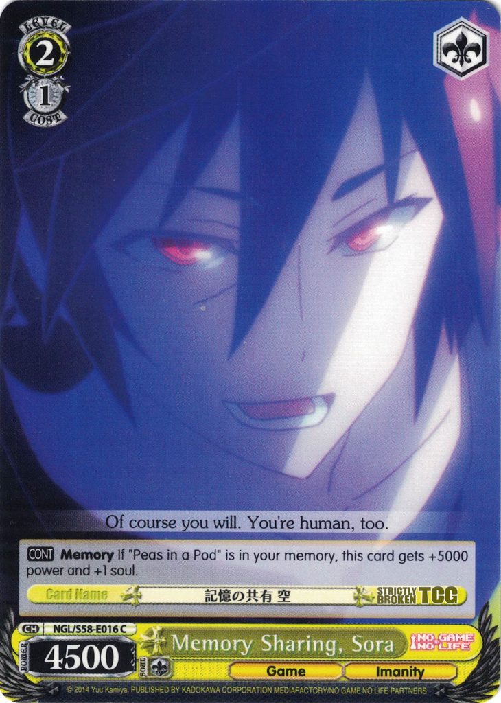 NGL/S58-E016 Memory Sharing, Sora - No Game No Life English Weiss Schwarz Trading Card Game