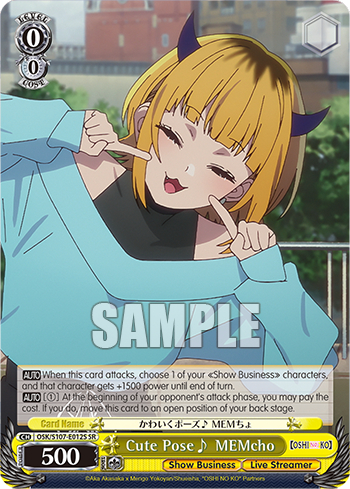【AUTO】 When this card attacks, choose 1 of your 《Show Business》 characters, and that character gets +1500 power until end of turn.
