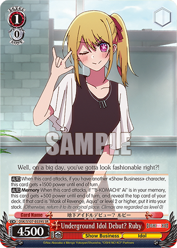 【AUTO】 Memory When this card attacks, if ""B-KOMACHI" Ai" is in your memory, this card gets +500 power until end of turn, and reveal the top card of your deck. If that card is "Mask of Revenge, Aqua" or level 2 or higher, put it into your stock. (Otherwise, return it to its original place. Climax are regarded as level 0)