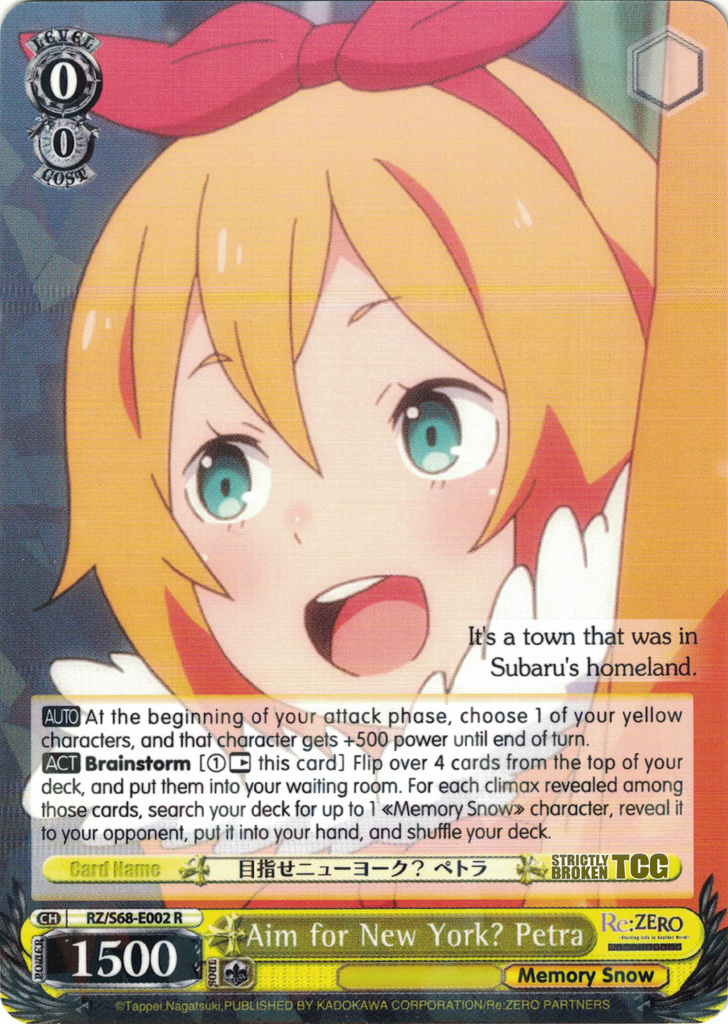 The Re:ZERO -Starting Life in Another World- Memory Snow English Weiss Schwarz Trading Card Game card images used on this site have been obtained and re-posted from Bushiroad websites in accordance to the guidelines stated there. Re-use of these images (re-post, distribution) is strictly prohibited.