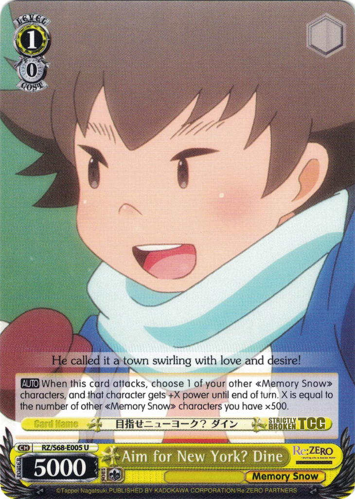 The Re:ZERO -Starting Life in Another World- Memory Snow English Weiss Schwarz Trading Card Game card images used on this site have been obtained and re-posted from Bushiroad websites in accordance to the guidelines stated there. Re-use of these images (re-post, distribution) is strictly prohibited. |