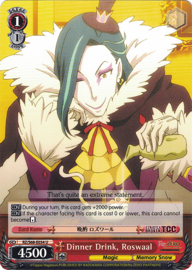 RZ/S68-E034 Dinner Drink, Roswaal - Re:ZERO -Starting Life in Another World- Memory Snow English Weiss Schwarz Trading Card Game