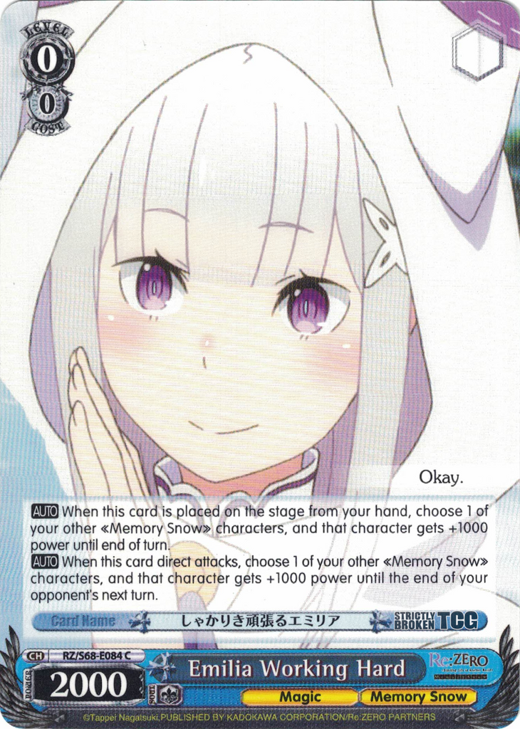 The Re:ZERO -Starting Life in Another World- Memory Snow English Weiss Schwarz Trading Card Game card images used on this site have been obtained and re-posted from Bushiroad websites in accordance to the guidelines stated there. Re-use of these images (re-post, distribution) is strictly prohibited.