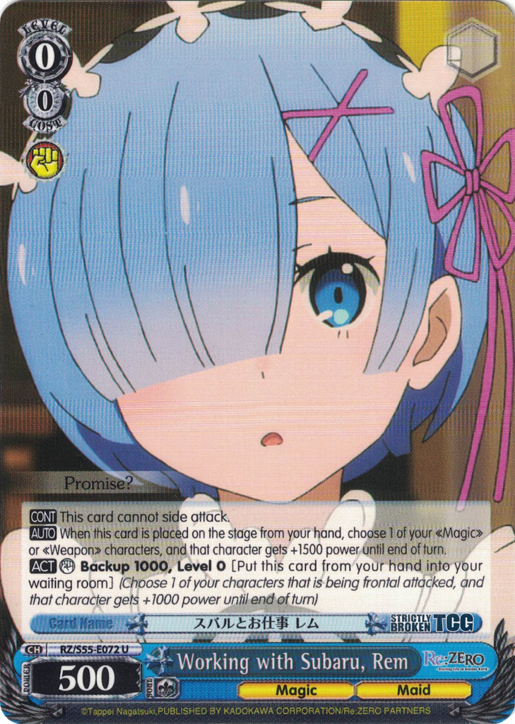 The Re:Zero Vol. 2 English Weiss Schwarz Trading Card Game card images used on this site have been obtained and re-posted from Bushiroad websites in accordance to the guidelines stated there. Re-use of these images (re-post, distribution) is strictly prohibited.