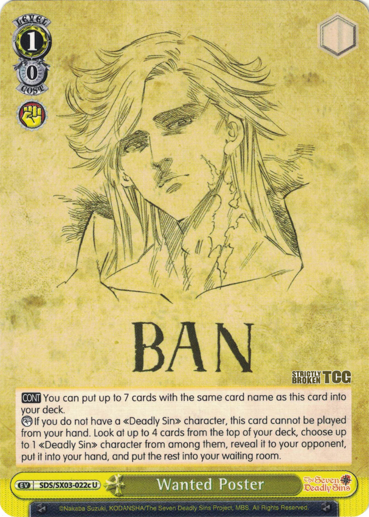 SDS/SX03-022c Wanted Poster - The Seven Deadly Sins English Weiss Schwarz Trading Card Game