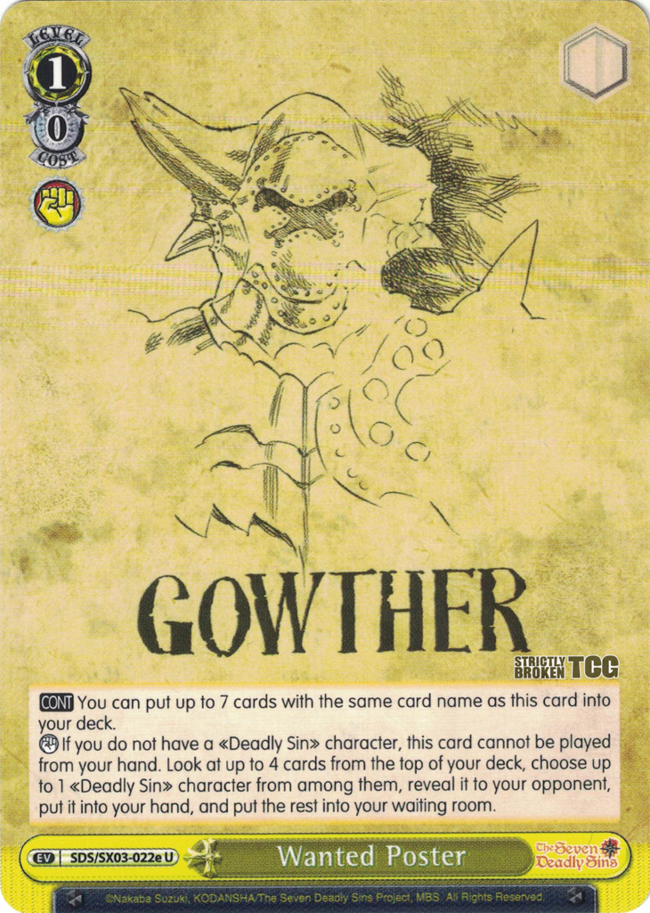 SDS/SX03-022e Wanted Poster - The Seven Deadly Sins English Weiss Schwarz Trading Card Game