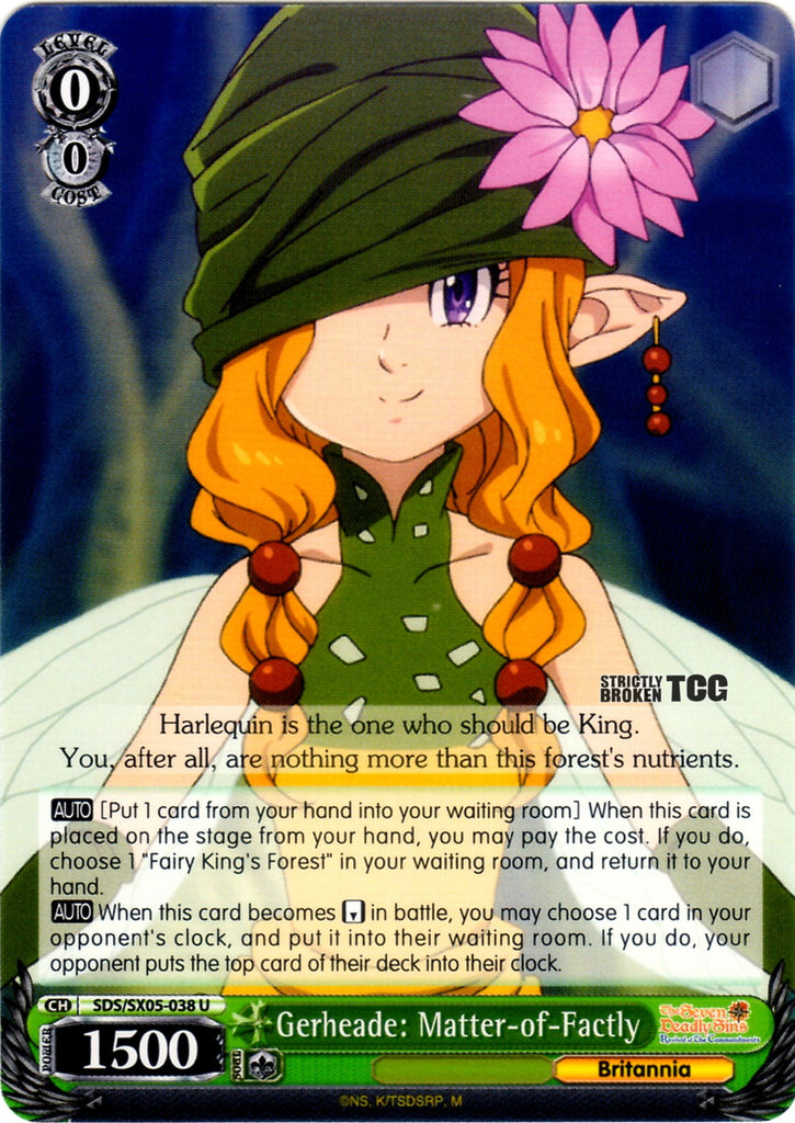 【AUTO】 [Put 1 card from your hand into your waiting room] When this card is placed on the stage from your hand, you may pay the cost. If you do, choose 1 "Fairy King's Forest" in your waiting room, and return it to your hand.