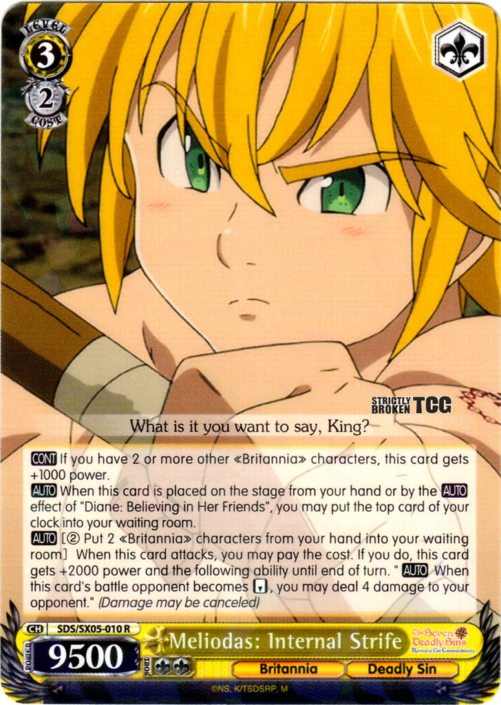【AUTO】 When this card is placed on the stage from your hand or by the 【AUTO】 effect of "Diane: Believing in Her Friends", you may put the top card of your clock into your waiting room.