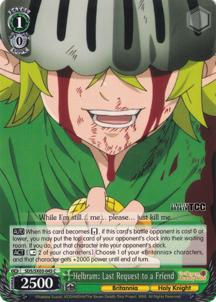 The Seven Deadly Sins English Weiss Schwarz Trading Card Game card images used on this site have been obtained and re-posted from Bushiroad websites in accordance to the guidelines stated there. Re-use of these images (re-post, distribution) is strictly prohibited.