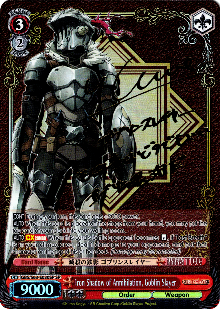The Goblin Slayer Foils English Weiss Schwarz Trading Card Game card images used on this site have been obtained and re-posted from Bushiroad websites in accordance to the guidelines stated there. Re-use of these images (re-post, distribution) is strictly prohibited.