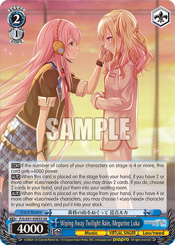 【AUTO】 When this card is placed on the stage from your hand, if you have 2 or more other 《Leo/need》 characters, you may draw 2 cards. If you do, choose 2 cards in your hand, and put them into your waiting room.